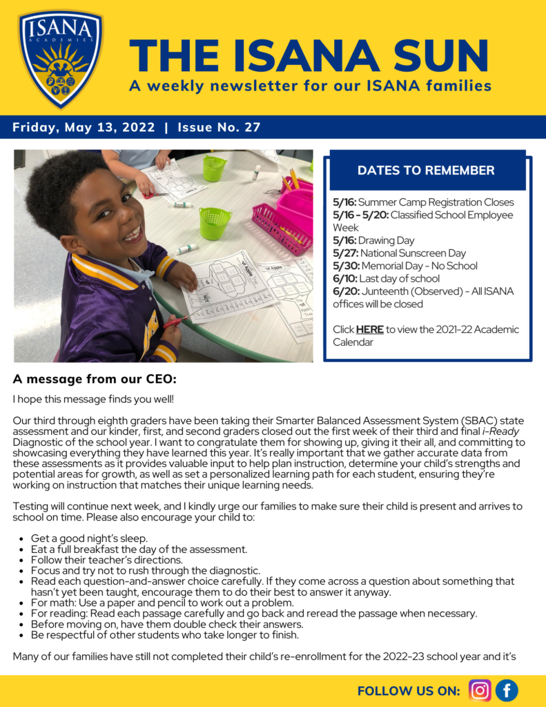 4/29/2022 – Weekly Newsletter (English and Spanish)